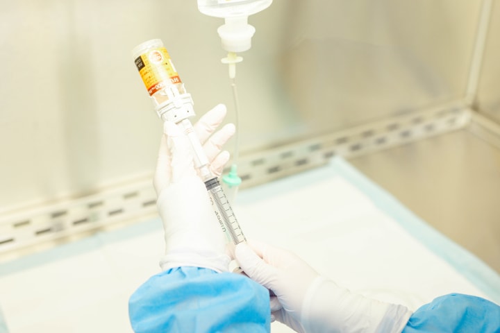 無菌室(エアーシャワー、クリーンベンチ、安全キャビネット)を完備。更に閉鎖式器具を採用し、抗がん剤のミキシングを行っているため、薬剤師のみならず、看護師、患者さんに安心安全な医療を提供することができます。