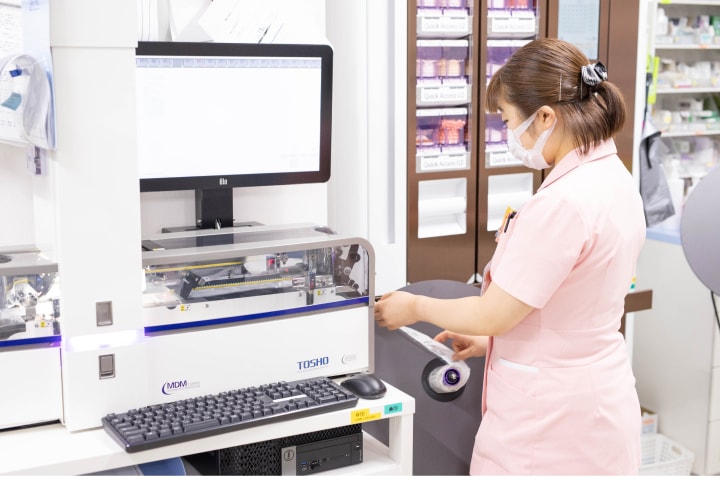 また、まだ採用の少ない錠剤一包化監査支援システムを導入しているため、監査業務の軽減に繋がっています。さらに電子カルテを導入しているので、あらゆる薬剤情報等を、即業務に活かすことができます。 -